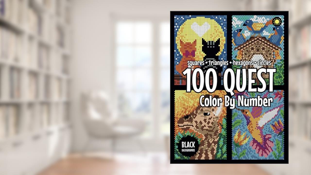 📖 100 QUEST Color By Number: Squares + Triangles + Hexagons + Circles (BLACK backgrounds): color quest activity book for adults