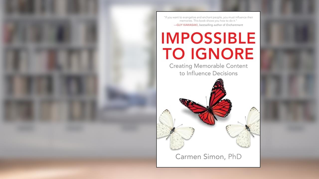 Impossible to Ignore: Creating Memorable Content to Influence Decisions by Carmen Simon is more than just a mere compilation of strategies; it's a clarion call for anyone involved in the art of communication and persuasion. In a world overflowing with information, this book serves as a beacon of clarity, guiding you through the murky waters of content creation with laser precision. Simon, a cognitive neuroscientist, transcends the conventional narrative of marketing and branding by interlacing scientific insights with practical applications. The result? A masterpiece that promises to reshape your approach to making your content not just seen, but truly unforgettable.