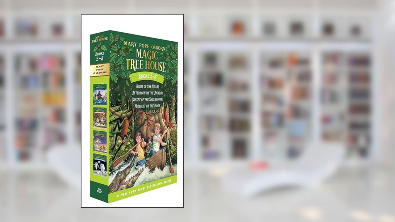 📖 Magic Tree House Boxed Set, Books 5-8: Night of the Ninjas, Afternoon on the Amazon, Sunset of the Sabertooth, and Midnight on the Moon