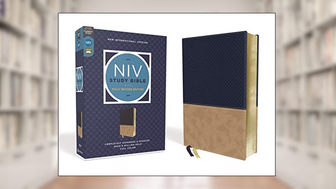 📖 NIV Study Bible, Fully Revised Edition (Study Deeply. Believe Wholeheartedly.), Leathersoft, Navy/Tan, Red Letter, Comfort Print